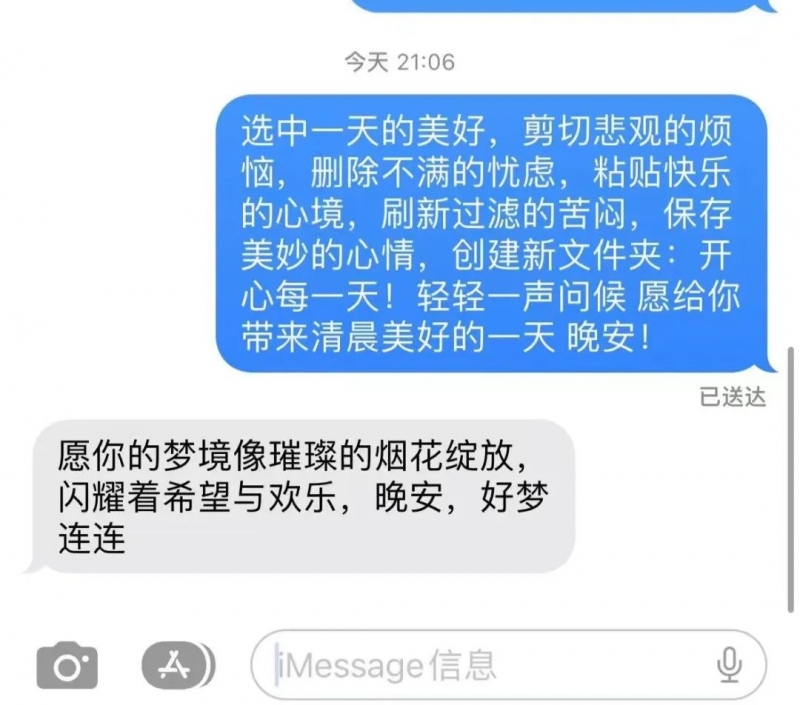 活動以發送“愛心短信”打卡的形式開展,通過手機短信為好友送上晚安祝福,未知身份不同地點的每個人都有意外的驚喜,在彼此的“愛心短信”中入眠。在這寒冬的漫漫長夜,讓我們一同回顧愛心短信里的溫情時刻吧!