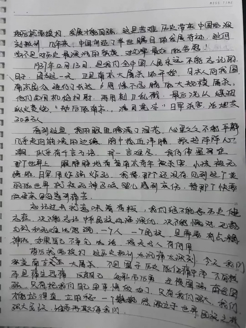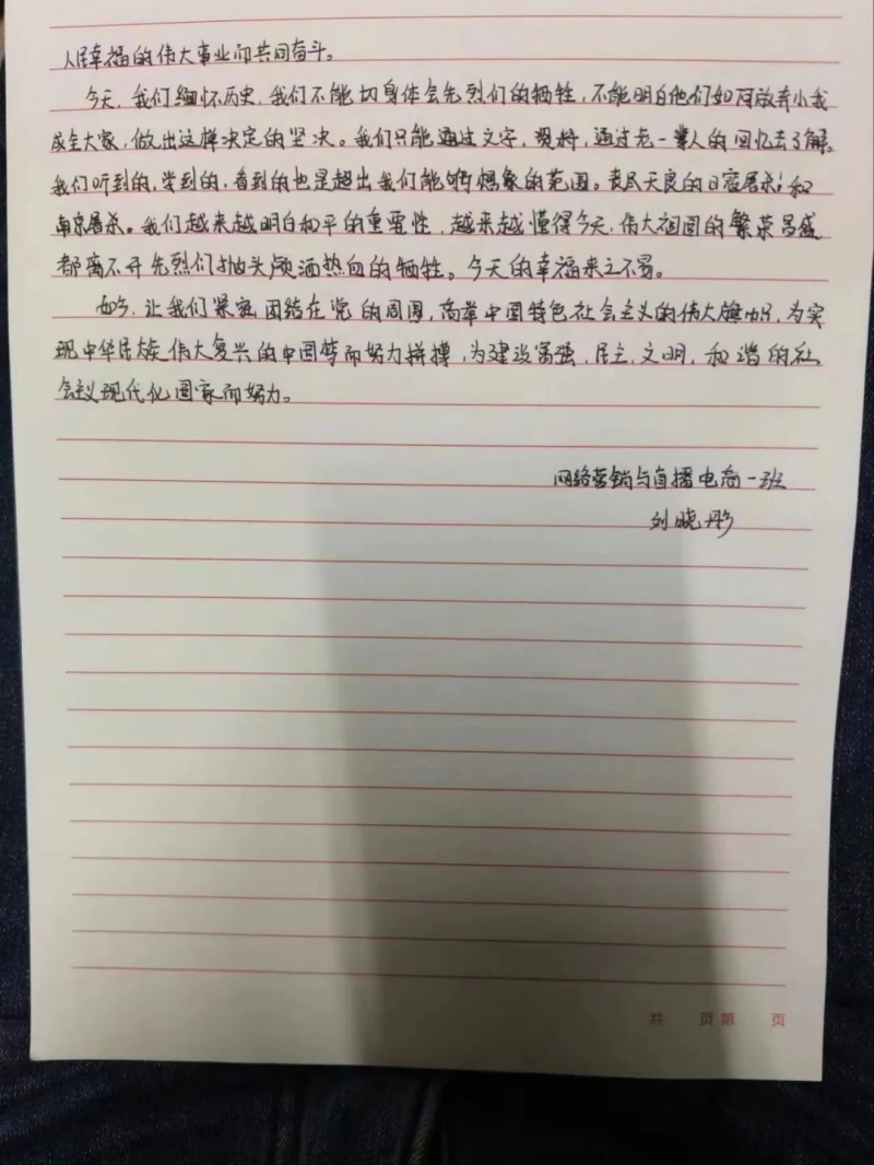 八十六年前的南京歷盡磨難,國土蒼茫,滿城風(fēng)雨飄搖,血淚模糊。電商學(xué)子持筆緬懷逝者,以書深情。每篇征文都融入其深深的愛國之情,喚起人們對歷史的記憶,珍愛和平,反對戰(zhàn)爭。