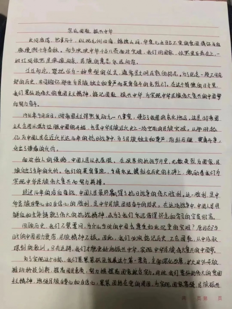 前事不忘,后事之師。本次國家公祭日征文活動喚起了系部學(xué)子對和平的向往與堅守。只有真正了解歷史,才能尊重歷史,才能不讓歷史重演。我們忘不了1937年的南京,是為了更好的守護我們的祖國。銘記,不只是民族的悲愴,還有落后必亡的訓(xùn)誡;紀念,從不為宣揚復(fù)仇的怨念,只為許下復(fù)興的心愿:吾輩當(dāng)自強,守護盛世中華。