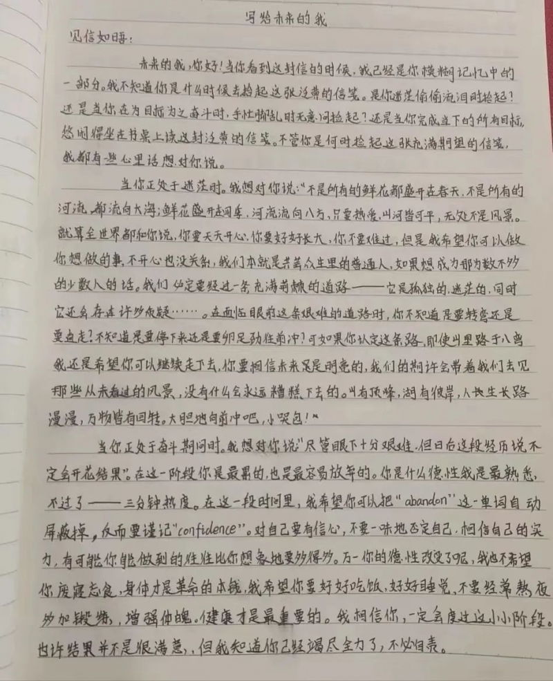 在活動中,同學們坦誠的表達了內心最真實的想法和感受。語言是強大的,有些話我們可能并不習慣用語言來表達,于是,文字在此刻爆發出了強烈的光芒。同學們將自己那從未展現于人前的小脾氣、對自己深夜輾轉反側的深思與懊悔、心中那小小的從未宣之于口的愿望、對自己未來的展望,用真摯的文字表達最真誠的自己。