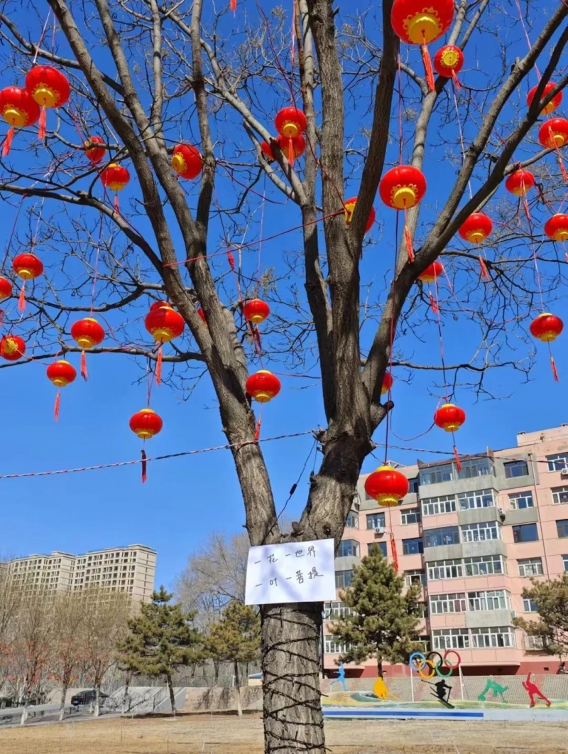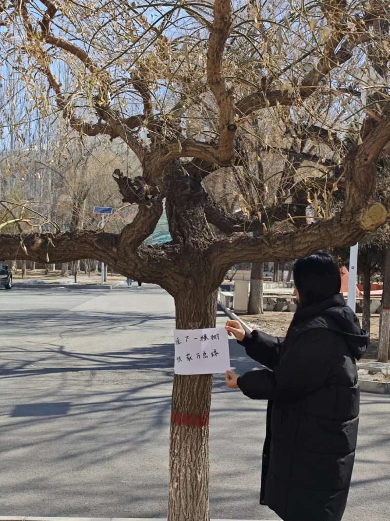 “人從眾團團聚園,木林森茂茂密密”、“造林及造福,栽樹即栽福”、“播撒一片綠色讓世界更美,愛護萬千樹木讓你我同行”……一句句滿載祝福的語言帶著蓬勃的生機被懸掛在初春嫩綠的枝丫上,時刻提醒著同學們要愛護環境、保護樹木,做環境的保護者。