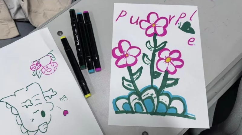 活動現場,同學們手持畫筆,自由創作,用抽象線條表達內心的奇思妙想,將許多主題融入作品,賦予涂鴉更深層次的意義。活動現場歡聲笑語不斷,畫筆與畫紙的摩擦聲交織成動人的旋律。同學們或用明快亮麗的色彩訴說青春的心聲,或用流暢靈動的線條傳遞純粹的歡樂。