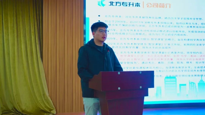 隨后,北方教育講師張偉鵬開展專項宣講,內容涵蓋三大核心模塊:一是河北省專接本考試全流程,詳細解讀報名、考試、成績查詢、志愿填報等關鍵環節;二是專接本報考政策,明確報考條件、專業對接、加分規則等核心要點;三是歷年考試數據分析,通過報考人數、錄取率、分數線等數據為學子提供參考。