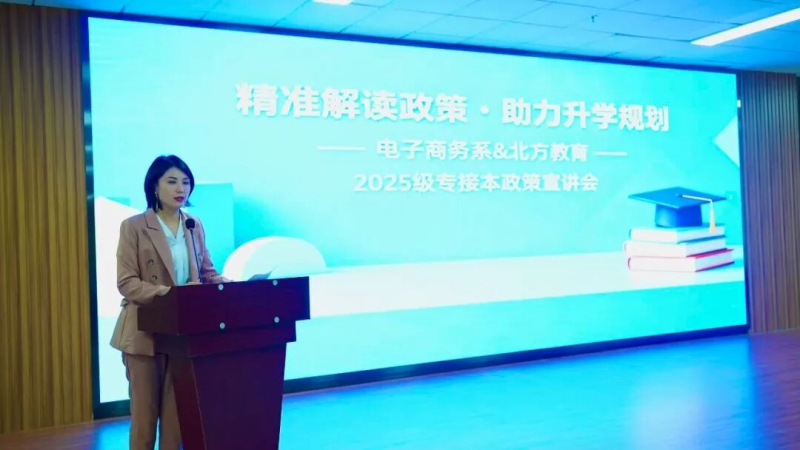 為助力 2025 級學生全面掌握河北省專接本考試政策,明確備考規劃與職業發展方向,9月26日,電子商務系攜手北方教育在知行樓 307 報告廳舉辦專接本政策宣講會。電子商務系書記、主任趙文杰,北方教育張家口地區總經理曹建飛出席會議。
