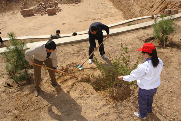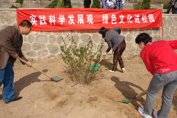 4月28日下午,學院組織師生百余人到行政辦公樓北側的荒坡上植樹綠化美化校園。學院領導王立秋、靳明、韓致愛、陳懷勇、許建平、宋德明與各行政部門教師代表、各系教師學生代表一同參加了植樹活動,共種植松樹、柏樹、丁香樹110余株。