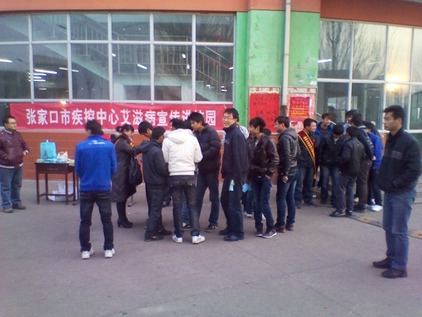 本次活動分為兩個部分。在學生食堂門口,工作人員發放了宣傳小冊子,印有宣傳信息的小禮品,擺放了二十多塊宣傳展板供同學們學習觀看。同時張家口電視臺的健康欄目主持人作為形象大使給同學們做了講解并合影。在307報告廳,來自市衛生局的專家給300多名學生做了預防艾滋病的專題講座。