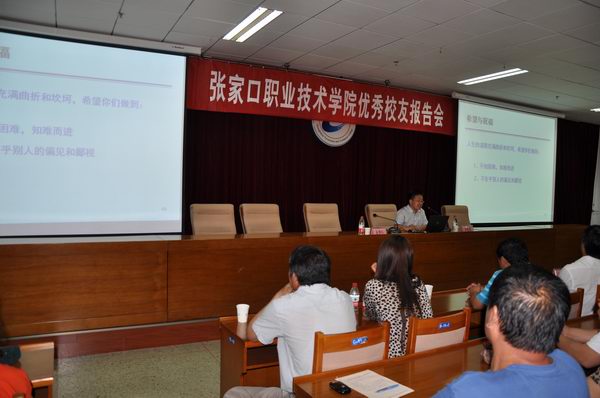 李艷東博士,原張家口農業機械工程學校93屆畢業生,中專畢業后參加了高等教育自學考試專本科的學習,先后進入中科院研究生院、國家地震局分析預報中心、清華大學、中石油勘探研究院地質資源與工程博士后流動站進行碩士、博士、博士后等學歷的學習,先后取得了機電、漢語言文學、機電一體化、英國語言文學、自動化、計算機及應用、固體地球物理學、模式識別與智能系統、石油物探技術九門專業的學歷。李艷東博士充滿真情實感、聲情并茂的講述使在座的全體師生對高職學校的發展前景充滿了信心,使同學們對自己的學歷、身份也不再妄自菲薄,內心里增添了母校榮譽感,更加堅定了學習的意志和信念。會場上,李博士的精彩演講不時被陣陣熱烈的掌聲所打斷。