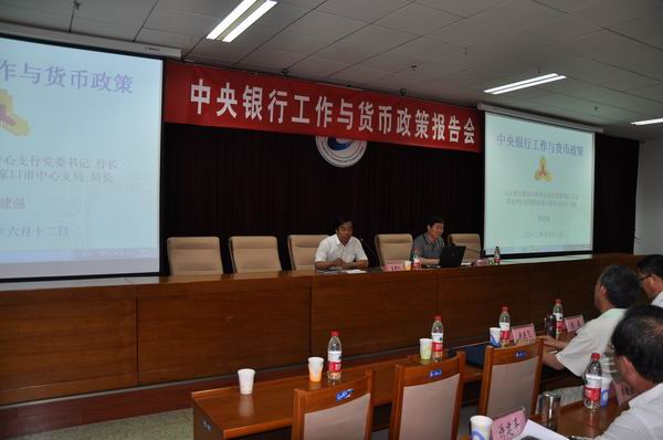報(bào)告會(huì)上,曹建強(qiáng)行長(zhǎng)從解析概念入手,重點(diǎn)就金融及金融體系架構(gòu)、貨幣政策綜述及發(fā)展趨勢(shì)、國內(nèi)外宏觀經(jīng)濟(jì)金融形勢(shì)、金融視角下的張家口經(jīng)濟(jì)和人民銀行張家口市中心支行工作情況五個(gè)方面做了精彩的講解。期間,曹行長(zhǎng)通俗易懂、深入淺出的語言表達(dá)形式和生動(dòng)詳實(shí)的案例講解使在場(chǎng)師生對(duì)現(xiàn)代金融的特點(diǎn)及影響力、央行發(fā)展沿革及職能作用、貨幣政策的內(nèi)涵及當(dāng)前政策取向、國內(nèi)外經(jīng)濟(jì)金融形勢(shì)及張家口市經(jīng)濟(jì)發(fā)展特點(diǎn)有了全新的了解,不時(shí)博得陣陣掌聲。