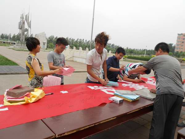 6月26日上午,我院在綜合辦公樓前進行了6.26國際禁毒日禁毒宣傳暨簽名活動。今年是第十七個“國際禁毒日”,主題是“抵制毒品,參與禁毒”,現場共有500余名學生在宣傳條幅上簽上了自己的名字,共發放禁毒宣傳材料500余份。
