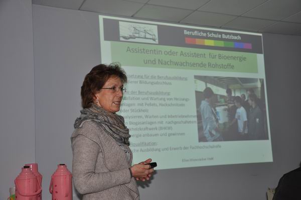 黑森州布茨巴赫市國(guó)家職業(yè)技術(shù)學(xué)校副校長(zhǎng)Ellen Stahl(艾倫·施塔爾)通過(guò)幻燈形式向在座人員詳細(xì)介紹了布茨巴赫市國(guó)家職業(yè)技術(shù)學(xué)校在新能源教學(xué)科研方面采取的措施和取得的成就。中德雙方就新能源專(zhuān)業(yè)的合作進(jìn)行了初步的探討。