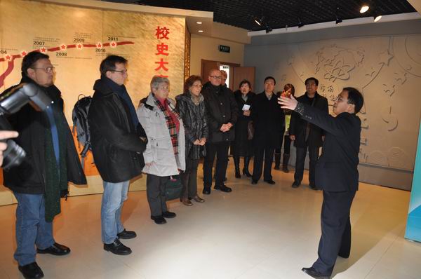座談會(huì)后,學(xué)院領(lǐng)導(dǎo)陪同德國(guó)客人參觀(guān)了校史展廳和汽車(chē)實(shí)訓(xùn)中心,并與客人合影留念。