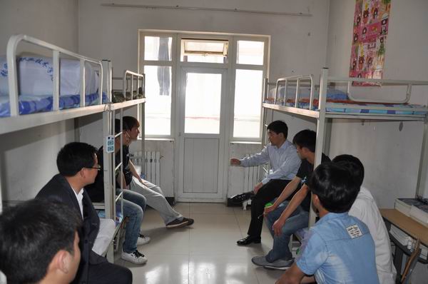 張書記又來到學(xué)生公寓2號(hào)樓318宿舍,與聯(lián)系宿舍成員見面并詳細(xì)詢問他們的學(xué)習(xí)、生活情況,勉勵(lì)大家抓緊寶貴時(shí)間,多讀書,讀好書,多方面、深層次地充實(shí)自己,努力提高自身能力,做社會(huì)的有用人才。張書記希望同學(xué)們能夠?qū)⑸詈蛯W(xué)習(xí)中遇到的困難和問題及時(shí)地向他反映,愿意幫助大家解決,并隨時(shí)歡迎同學(xué)們到辦公室做客。