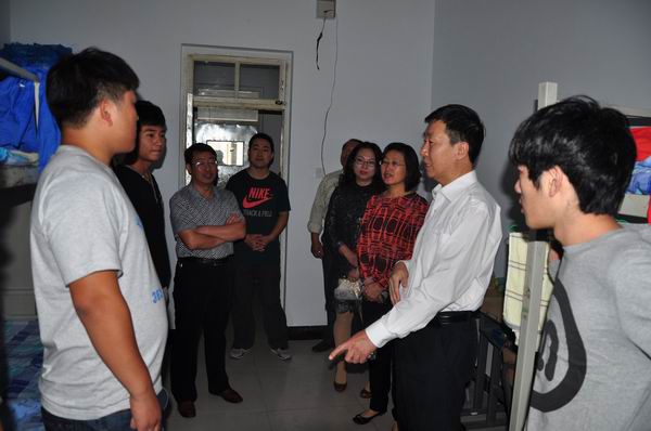 9月11日上午,學院黨委書記胡煒、紀檢書記史慧武深入到學生公寓,親切看望慰問我院2013級新生。辦公室主任馮莉群、學工處處長馮志成及公寓工作人員全程陪同。