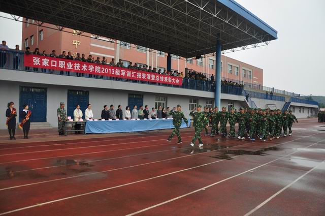 9 月18日上午9時(shí),伴隨著莊嚴(yán)雄壯的國(guó)歌聲,我院2013級(jí)新生軍訓(xùn)匯報(bào)表演暨總結(jié)表彰大會(huì)在體育場(chǎng)隆重舉行。黨委書記胡煒、院長(zhǎng)王立秋、紀(jì)委書記史慧武出席大會(huì),各系書記、團(tuán)總支書記、新生輔導(dǎo)員及學(xué)院軍訓(xùn)領(lǐng)導(dǎo)小組全體成員參加了大會(huì),張家口軍分區(qū)軍訓(xùn)辦參謀翟民偉應(yīng)邀到會(huì)。大會(huì)由史慧武主持。