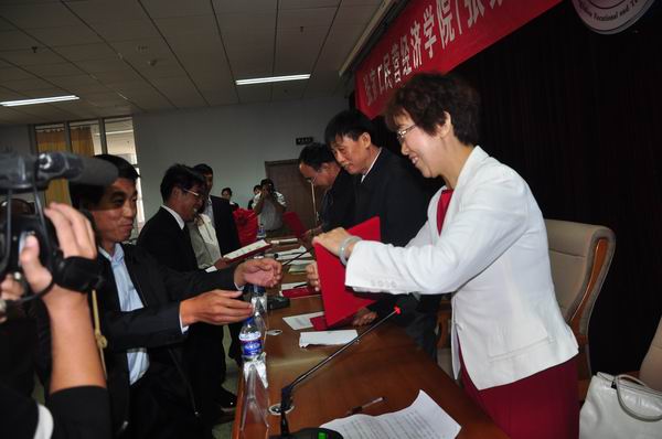9月29日,張家口民營經濟學院(市工商聯培訓中心)成立大會在我院舉行。省工商聯副主席孫增泰,市委常委、政法委書記、統戰部長李青春,市人大副主任、工商聯主席武鳳英,市政府副市長李宏,市教育局調研員張殿忠,我院黨委書記胡煒、院長王立秋、副院長宋德明等領導出席。成立大會上,張家口民營經濟學院(市工商聯培訓中心)聘請市領導鄭麗榮、李青春、武鳳英為名譽院長,武鳳英為教務委員會主任,我院院長王立秋為院長。民營經濟學院由我院和市工商聯聯合組建,為工商聯會員搭建了學習、交流和溝通平臺。學院成立后,將聘請國內外知名教授、學者、企業家等,有計劃、有針對性地為民營企業中高管理層、企業員工和工商聯系統干部開展培訓。