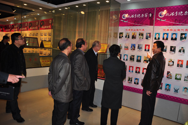 李宏副市長一行實地察看了學院汽車實訓中心、機電實訓中心、軟件與外包服務(wù)學院、電氣實訓中心和校史展。
