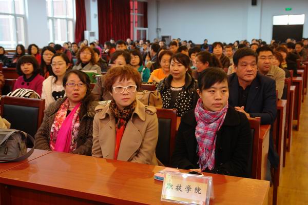 11月7日下午,張家口學(xué)院知行樓五樓報告廳座無虛席,掌聲雷動。由張家口市教育工委、張家口市教育局舉辦的高校專場“學(xué)習(xí)全國教書育人楷模汪秀麗同志先進事跡報告會”在這里舉行,來自包括我院50名教師代表、河北北方學(xué)院、河北建筑工程學(xué)院、張家口學(xué)院、北方機電等共計400多名教育工作者到現(xiàn)場聆聽了報告,大家近距離領(lǐng)略了這位先進人物的楷模風(fēng)采,感受著榜樣的力量。