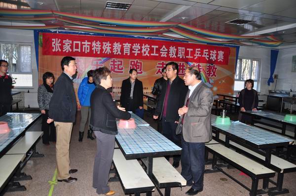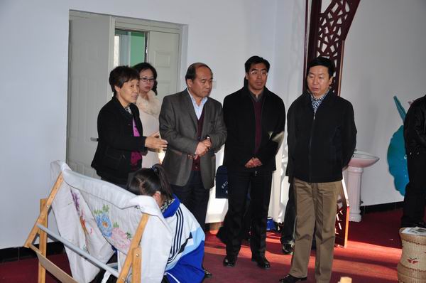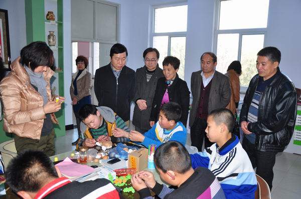 在市特殊教育學校蘇校長、楊書記等校領導的陪同下,胡書記一行參觀了該校餐廳、學生宿舍、手工藝和中醫保健實訓中心、音樂室、美術室、刺繡室等。