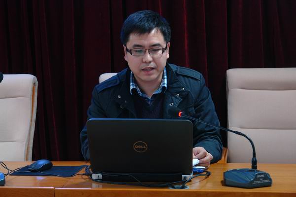 劉斌代表《基于校企合作路徑的高職院校校園文化建設》課題組作開題陳述