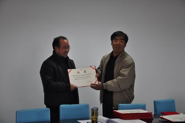 胡書記代表黨委向院長王立秋頒發了學術委員會主任委員聘書;王院長向副主任委員、秘書長及新任學術委員們一一頒發了聘書。