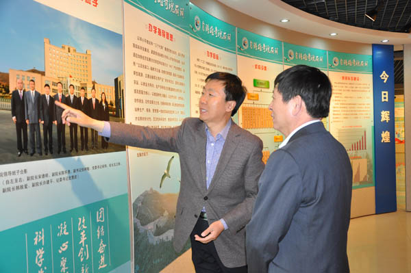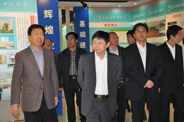 授課輔導前,市委書記邢國輝一行在學院領導胡煒、王立秋、楊瑞輝、宋德明等陪同下參觀了學院校史展廳。