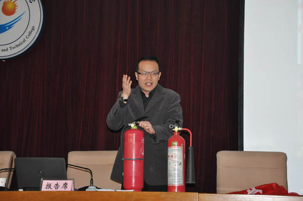 為進一步加強學院消防安全管理,預防和減少火災事故發生,保障廣大師生人身、財產安全, 5月14日下午在學院綜合樓307報告廳舉辦消防安全工作培訓會。邀請市社安防火中心李主任作主講,院長王立秋主持,紀委書記史慧武出席,全體教職工參加了培訓會。