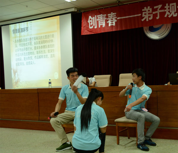為了培育和踐行社會主義核心價值觀,進一步擴大“守紀明禮”文明修身主題教育活動的成果,使大學生能夠在中華傳統文化中汲取精髓,更好地養成良好的文明生活習慣,6月30日下午,團委在報告廳舉辦了《創青春——弟子規頌讀比賽》。