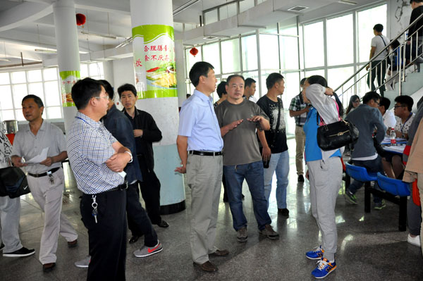 9月3日上午,由省教育廳、省質(zhì)監(jiān)局有關(guān)領(lǐng)導(dǎo)組成的新生入學(xué)檢查組一行四人蒞臨我院檢查指導(dǎo)工作。在院領(lǐng)導(dǎo)胡煒、王立秋、史慧武及學(xué)工處、后勤處、保衛(wèi)處有關(guān)負(fù)責(zé)人陪同下,檢查組深入食堂、宿舍、訓(xùn)練館,就新生報(bào)到綠色通道、公寓物品發(fā)放、飯菜價(jià)格、食品安全措施、宿舍配置、環(huán)境衛(wèi)生等情況進(jìn)行了現(xiàn)場(chǎng)檢查,對(duì)我院新生接待準(zhǔn)備工作給予充分肯定。