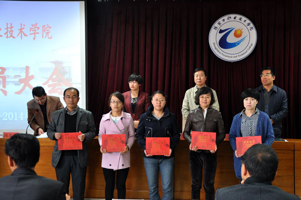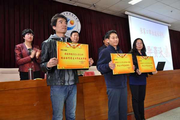 學院領導為榮獲學生工作先進集體、優秀輔導員頒獎。獲獎代表經濟管理系黨支部書記彌淑琴、土木工程系輔導員梁莎莎先后發言。