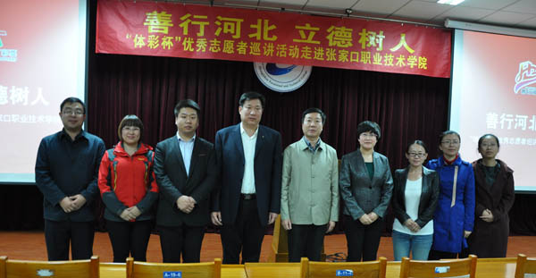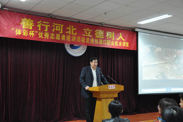 紀委書記史慧武在主持報告會時指出,近年來我院青年志愿者立足校園,走進社區,服務弱勢群體,受得了廣泛贊譽,我院將以此次巡講報告會為契機, 學習好、宣傳好志愿者們的先進事跡,進一步健全志愿者服務機制,進一步鞏固我院精神文明建設成果,為學院發展、為張家口精神文明建設、為善行河北,為強化社會主義核心價值觀教育,增添動人的音符、和諧的樂章、文明的色彩,為實現中華民族偉大復興的中國夢不懈奮斗。