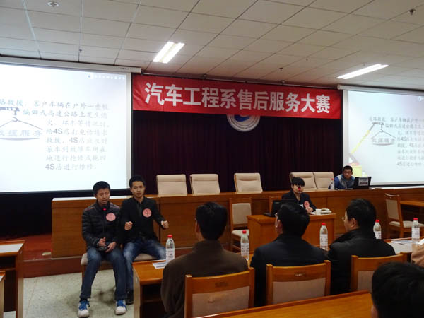 本次大賽,汽車工程系有10支代表隊報名參賽,經過預賽有4支代表隊進入了決賽。決賽現場氣氛熱烈、精彩紛呈,各代表隊通過闡述服務理念,電話咨詢車輛故障、保險理賠,模擬事故維修、道路救援、客戶回訪、調解客戶糾紛等,充分展示了汽車售后服務的各工作環節,博得了同學們的陣陣掌聲。