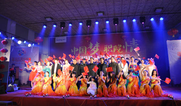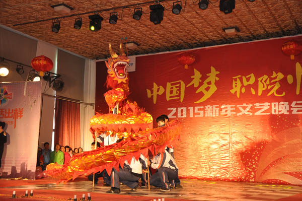 整場演出凸顯“中國夢 職院情”主題,歌舞聲情并茂,或舒緩深情,或奔放激烈,精彩紛呈,高潮迭起。節目形式又有新突破,既有“極限自行車”表演者的高、難、驚、險,又有“舞龍”表演隊的高端、大氣、上檔次,“舞龍”的精彩、完美、激情、騰躍預示著我院一定會在2015年取得新的業績和輝煌!