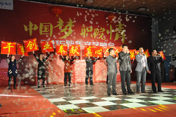 本場聯歡會,師生職工同臺情深意濃,形成“凝心聚力謀發展,同心同德促建設”的良好勢頭。2015年我們將在新起點以新面貌開始新征程。相信在師生的共同努力和不懈奮斗下,張職院的明天必將更加美好!