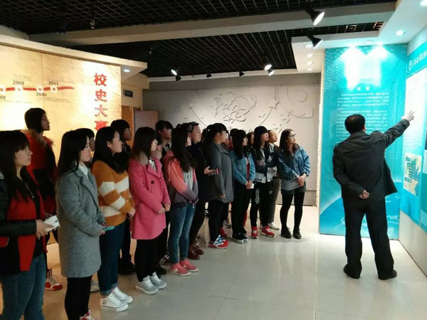 3月26日上午,社科部吳友石教授利用“概論課”的教學(xué)實(shí)踐,組織2014級(jí)青少年管理班、移動(dòng)通信班和國(guó)際貿(mào)易班參觀了學(xué)院的校史展。宣傳統(tǒng)戰(zhàn)處由專人為學(xué)生們?cè)敿?xì)地講解介紹了學(xué)院的基本概況、歷史沿革、教學(xué)設(shè)施、實(shí)訓(xùn)基地、校園文化、優(yōu)秀校友等等,學(xué)生們研讀著那記錄學(xué)院發(fā)展歷程的文字簡(jiǎn)介,觀看著一幅幅定格歷史瞬間的照片圖片,他們認(rèn)真聆聽(tīng),駐足觀看,拍照留念。60多年的春去秋來(lái),60多年的風(fēng)雨兼程,60多年的光輝歲月,承載著我院60多年的春華秋實(shí)。