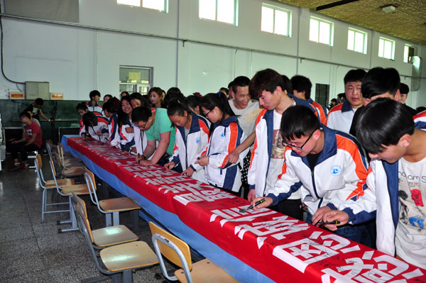 學工處處長馮志成宣講活動的實施意見,并宣布活動正式啟動。國家獎學金、助學金獲得者王艷敏、李旭東同學代表全院學生發言,向全體同學發出倡議。院學生會主席張躍帶領全體學生莊嚴宣誓:“做誠信之人,走自強之路,以赤誠之心,待人處事;以優異成績,回報學院……”在振奮人心的時刻,全場學生紛紛在“攜手感恩誠信 最美青春同行 做新時代大學生”的橫幅上簽名。