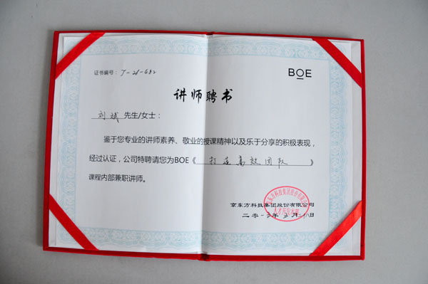 在京東方特色課程在校教師培養(yǎng)選聘會期間,招生就業(yè)處的三位同志積極參與、認(rèn)真準(zhǔn)備,全部通過了企業(yè)的認(rèn)證考核,被聘為京東方科技集團(tuán)股份有限公司(BOE)《打造高效團(tuán)隊》《職場禮儀修養(yǎng)》《職業(yè)心態(tài)》課程的認(rèn)證講師。