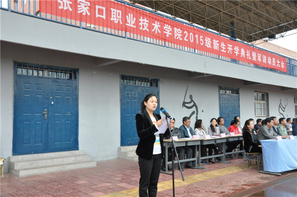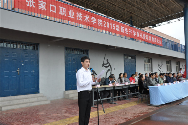 教師代表張欣然、在校生代表張躍、新生代表李文馨、軍訓(xùn)教官代表張明明先后發(fā)言。