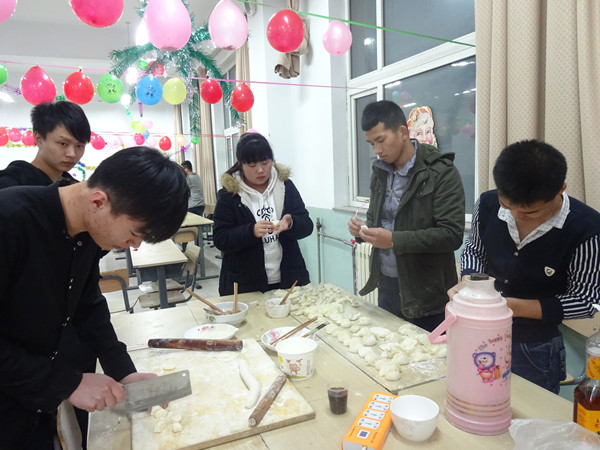 12月25日,汽車工程系在汽修樓16多媒體教室舉辦“歡度圣誕喜迎元旦”聯歡晚會。晚會內容包含“包餃子”、“猜詞語”、“團結協作”、“頭頂氣球”四個部分。
