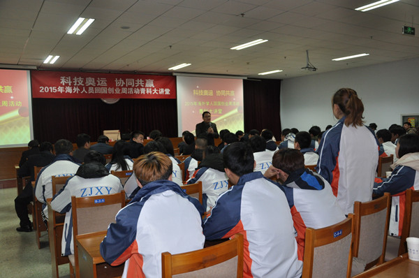 12月29日晚上,“科技奧運(yùn)·協(xié)同共贏”2015年海外學(xué)人回國創(chuàng)業(yè)周(張家口)活動(dòng)——青科大講堂在我院綜合樓307舉行。河北團(tuán)省委副書記、黨組副書記、河北省青聯(lián)主席宋華英,河北省青聯(lián)副主席徐峰,團(tuán)中央統(tǒng)戰(zhàn)部科技處調(diào)研員李雪梅,河北團(tuán)省委統(tǒng)戰(zhàn)部部長(zhǎng)、河北省青聯(lián)秘書長(zhǎng)夏少鵬,張家口團(tuán)市委書記胡偉奇,副書記蔣文冬、楊琳等領(lǐng)導(dǎo)出席會(huì)議。學(xué)院黨委書記胡煒、副書記張樹敏參加大會(huì)。20位海外學(xué)人、省青聯(lián)委員與我院200名學(xué)生共同聆聽分享了大講堂內(nèi)容。