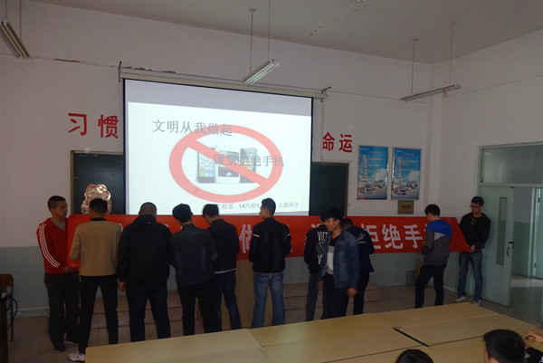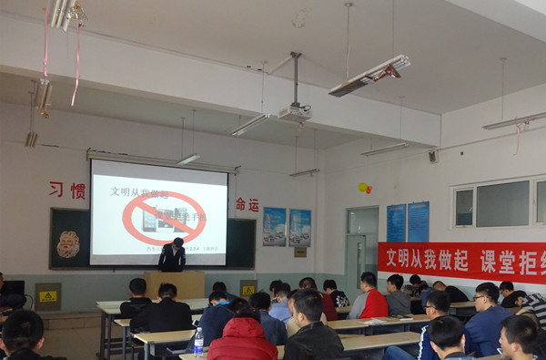 班會以“文明從我做起,課堂拒絕手機(jī)”為主題,通過PPT、視頻、演講等形式,引導(dǎo)學(xué)生科學(xué)合理使用手機(jī),進(jìn)一步提升學(xué)生課堂文明意識,提高課堂教學(xué)質(zhì)量。會議由各班輔導(dǎo)員老師主持。會后,同學(xué)們紛紛在宣傳條幅上簽字表示自己的決心。