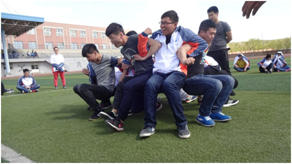 活動以班級為單位,各班輔導員及學生積極參與?;顒影ㄕ媲閭鬟f、瞎子背瘸子、信任背摔、坐地起身四個項目,其中,“信任背摔”比賽是本次活動中的亮點,男、女生齊上陣,躍躍欲試,考驗了同學們的信任默契度。各班同學們大展身手,場面熱鬧、激烈?;顒咏Y束后,同學們紛紛表示,活動的開展讓大家在情趣盎然中鍛煉了身體,陶冶了情操,提高了廣大學生體質。