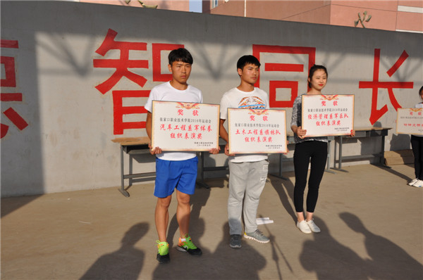 裁判長楊彬老師宣布了比賽成績和優(yōu)秀團隊,土木工程系、信息工程系分獲本次運動會男女團體總分第一名。健身操比賽中,土木工程系以9.60的高分獲得第一名,汽車工程系、信息工程系,分別獲得第二名、第三名。學生工作處處長馮志成宣布本屆運動會體育精神文明獎的代表隊名單。