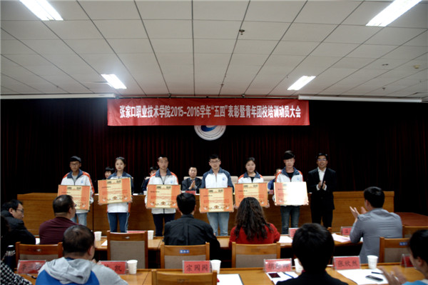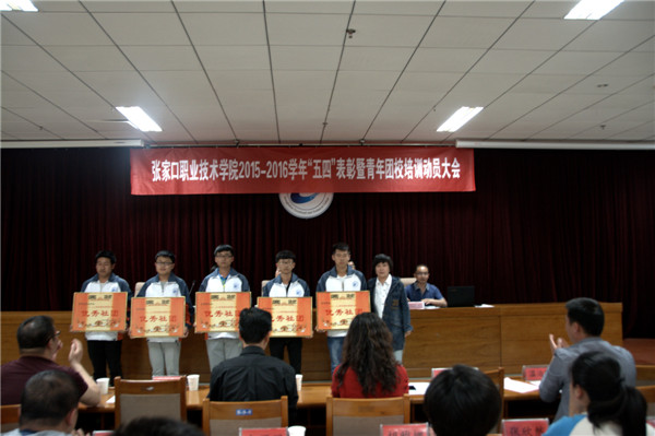 大會(huì)在雄壯的國歌聲中拉開帷幕,學(xué)工處副處長安姍姍宣讀了《共青團(tuán)張家口職業(yè)技術(shù)學(xué)院委員會(huì)關(guān)于表彰2015-2016學(xué)年度先進(jìn)集體和先進(jìn)個(gè)人的決定》。信息工程系和土木工程系2個(gè)團(tuán)總支榮獲“學(xué)生活動(dòng)工作突出優(yōu)秀團(tuán)總支”榮譽(yù)稱號(hào);汽車工程系、經(jīng)濟(jì)管理系和機(jī)械工程系3個(gè)團(tuán)總支榮獲“學(xué)生活動(dòng)特色鮮明優(yōu)秀團(tuán)總支”榮譽(yù)稱號(hào);汽車工程系、經(jīng)濟(jì)管理系、信息工程系、土木工程系、機(jī)械工程系、電氣工程系6個(gè)團(tuán)總支榮獲“春季學(xué)雷鋒活動(dòng)先進(jìn)團(tuán)總支”榮譽(yù)稱號(hào)。馬燕坤、金銘鈺、張欣然、胡雅娜、宗園園5名團(tuán)總支書記榮獲“優(yōu)秀團(tuán)務(wù)工作者”榮譽(yù)稱號(hào)。15級(jí)移動(dòng)通信技術(shù)班等12個(gè)團(tuán)支部榮獲“優(yōu)秀團(tuán)支部”榮譽(yù)稱號(hào);青年志愿者協(xié)會(huì)等5個(gè)社團(tuán)榮獲“優(yōu)秀社團(tuán)”榮譽(yù)稱號(hào);辛佳利等9名同學(xué)榮獲“校級(jí)優(yōu)秀團(tuán)務(wù)工作者”榮譽(yù)稱號(hào);吳孟忱等87名同學(xué)榮獲“優(yōu)秀團(tuán)學(xué)干部”榮譽(yù)稱號(hào);張紫薇等187名同學(xué)榮獲“優(yōu)秀共青團(tuán)員”榮譽(yù)稱號(hào);石曉海等33名同學(xué)榮獲“優(yōu)秀青年志愿者”榮譽(yù)稱號(hào)。