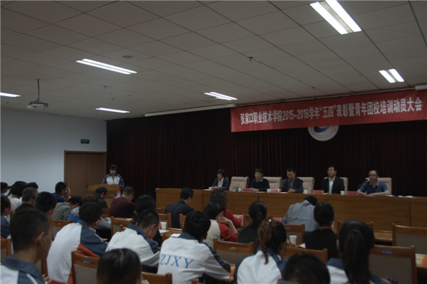5月23日,學(xué)院2015-2016年度“五四”表彰暨青年團(tuán)校培訓(xùn)動(dòng)員大會(huì)在學(xué)院報(bào)告廳舉行。學(xué)院黨委書記胡煒、院長王立秋、黨委副書記張樹敏出席大會(huì),學(xué)生工作處相關(guān)負(fù)責(zé)人、各系部書記、團(tuán)總支書記及300余名團(tuán)學(xué)干部參加大會(huì)。會(huì)議由院團(tuán)委書記郭獻(xiàn)崇主持。