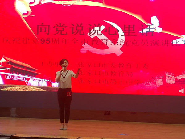 胡老師以“扎根山城職教事業(yè),為黨旗增添一抹亮麗紅色”為題作演講,言語樸實(shí),感情真摯,道出了最想對(duì)黨說的心里話,表達(dá)了對(duì)黨的忠誠和熾熱之情,其聲情并茂,出色的表現(xiàn)打動(dòng)了在場每一個(gè)觀眾的心,贏得了評(píng)委的一致好評(píng)。最終取得第一名的優(yōu)異成績。