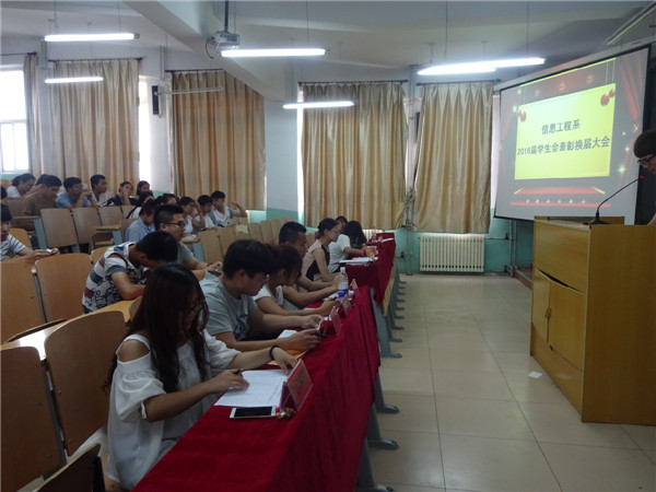 7月2日,信息工程系團總支學生會換屆暨表彰大會在博學樓310舉行。大會由系學生會文體部部長王毅主持,學生會全體成員參加。