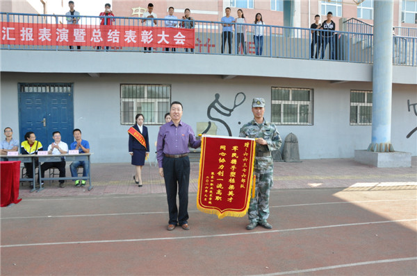 張樹敏書記宣讀了軍訓先進集體和軍訓標兵的表彰決定,對軍訓團1連等3個先進集體和陳強等40名軍訓標兵予以表彰,與會領導為獲獎代表頒獎。