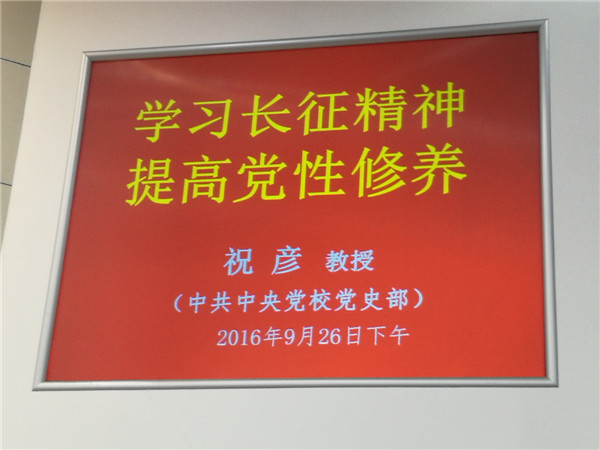 祝彥教授以深厚的理論功底、淵博的知識(shí)講述了紅軍長(zhǎng)征氣勢(shì)磅礴的歷史征程及路途中的艱難險(xiǎn)阻。今年恰逢紅軍長(zhǎng)征勝利80周年,八十年前的苦難與輝煌,開創(chuàng)了中國(guó)革命的新天地,創(chuàng)造了人類歷史上的偉大奇跡。在祝彥教授飽含激情的報(bào)告中,紅軍戰(zhàn)士不畏艱苦勇往直前的必勝信念,為中華民族解放和中國(guó)廣大人民奮斗不息的長(zhǎng)征精神,深深的感染了大家。