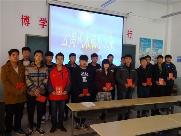 最終公示評選結果:一等獎的寢室為2-125、2-123、2-128、3-317;獲得二等獎的寢室為2-109、2-112、2-113、2-124、2-126;獲得三等獎的寢室為2-102、2-103、2-104、2-106、2-108、2-110、2-111。