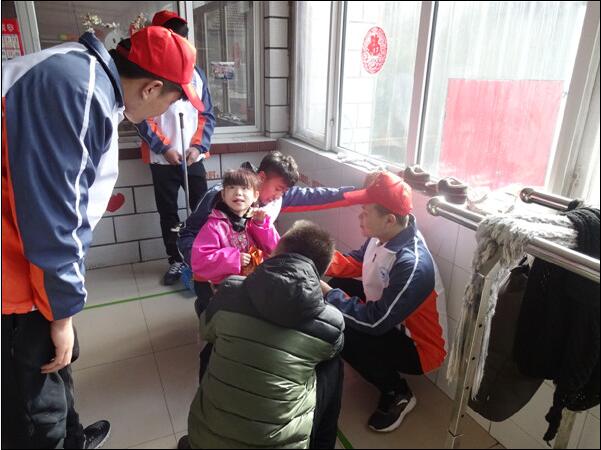 走進孤兒院,那里的工作人員熱情的接待了志愿者們。大家按照事前的安排進行工作,一些同學清理孤兒院的衛(wèi)生,擦玻璃、桌椅,清掃地面,整理物品;還有一些同學負責幫工作人員照顧孩子,與孩子們一起玩耍做游戲,陣陣歡聲笑語讓整個孤兒院內洋溢著溫馨、歡快的氣氛。